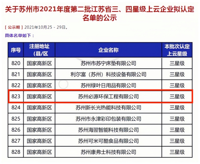 蘇州市工信局提名丨三星級(jí)上云企業(yè)獲獎(jiǎng)名單:必源環(huán)保入列!