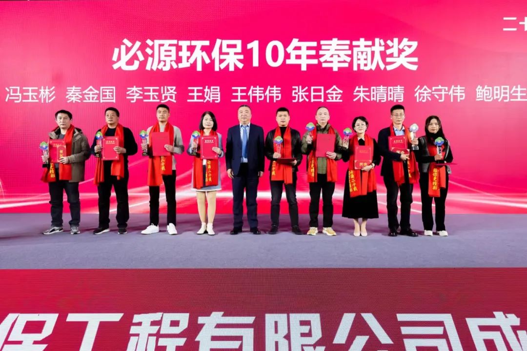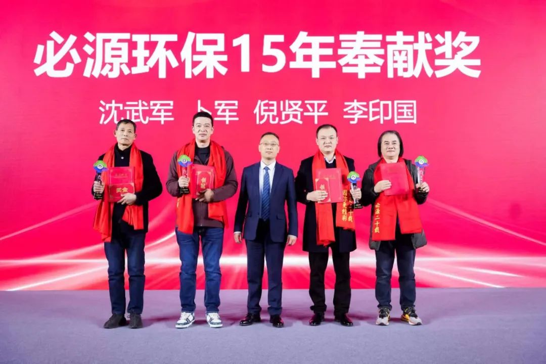 感謝你們?cè)谶@十五年撒下的辛勞汗水,在每一份的成果里,都有你們播撒的不懈努力。你們用專業(yè)的視角,獨(dú)到的管理,任勞任怨的行動(dòng),為我們?cè)忈屃酥艺\與責(zé)任?;顒?dòng)現(xiàn)場(chǎng)頒發(fā)了十五年奉獻(xiàn)獎(jiǎng)、十年奉獻(xiàn)獎(jiǎng)、愛崗敬業(yè)獎(jiǎng)、研發(fā)創(chuàng)新模范獎(jiǎng)和突出貢獻(xiàn)團(tuán)隊(duì)獎(jiǎng)等多個(gè)獎(jiǎng)項(xiàng),以表彰在公司發(fā)展中做出杰出貢獻(xiàn)的員工。得獎(jiǎng)?wù)邆兗娂姳硎?,將繼續(xù)努力工作,為必源環(huán)保的未來發(fā)展貢獻(xiàn)自己的力量。