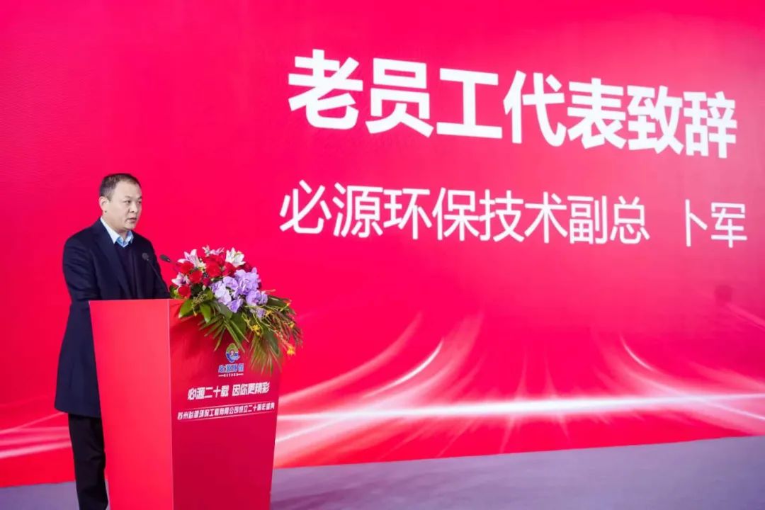 慶典在必源環(huán)??偨?jīng)理何學(xué)軍的開場(chǎng)詞中拉開帷幕。20年,風(fēng)雨兼程,我們共同見證了公司的蓬勃發(fā)展。20年,是一段漫長而又短暫的歲月。漫長,是因?yàn)槲覀冊(cè)谶@段時(shí)間里,從無到有,從小到大,一步步地走向了行業(yè)的前列;短暫,是因?yàn)榉路疝D(zhuǎn)瞬即逝,我們已經(jīng)迎來了這個(gè)值得紀(jì)念的重要時(shí)刻。在這20年的時(shí)間里,每一位在座的員工都為公司的成長付出了辛勤的努力。正是因?yàn)橛辛四銈兊钠床c奉獻(xiàn),才鑄就了今天我們公司的輝煌。感謝大家在過去的歲月里一起風(fēng)雨同舟,真情攜手。他表示,必源環(huán)保將不斷創(chuàng)新和發(fā)展,為社會(huì)和客戶創(chuàng)造更多價(jià)值。