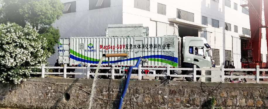 我司還擁有一款基于超磁分離技術(shù)的車載式一體化凈水系統(tǒng)--MagSep-SOV應(yīng)急水體凈化特種作業(yè)車,此款作業(yè)車擁有獨(dú)立自主的專利技術(shù)及知識(shí)產(chǎn)權(quán),整體技術(shù)處于國(guó)內(nèi)優(yōu)秀水平。MagSep-SOV應(yīng)急水體凈化特種作業(yè)車具有高機(jī)動(dòng)性、靈活性、無(wú)間歇連續(xù)式運(yùn)行、處理通量大、凈化效率高、應(yīng)用范圍廣泛、不受地形影響等多方位優(yōu)勢(shì),應(yīng)急性強(qiáng),可應(yīng)對(duì)多場(chǎng)景水污染處置需求。對(duì)雨季溢流污染可以快速、高效地凈化受污染水體,從而減輕雨季溢流污染對(duì)環(huán)境的影響。該特種作業(yè)車兼具行走系統(tǒng)、取水系統(tǒng)、排水系統(tǒng)、照明系統(tǒng)、發(fā)電系統(tǒng)、水處理系統(tǒng)及污泥處置系統(tǒng)等七大功能,能夠快速機(jī)動(dòng)地完成水污染防治等工作。尤其是在暴雨初期,由于初始沖刷現(xiàn)象,污染程度往往會(huì)加劇,而應(yīng)急水體凈化特種作業(yè)車能夠迅速介入,有效減輕環(huán)境污染,保護(hù)水資源,為水污染治理和防治提供高效靈活的應(yīng)對(duì)模式。